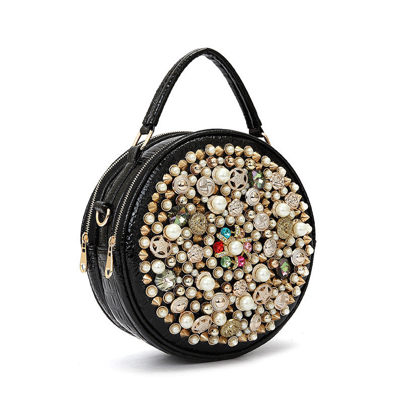 Female Diamond Handbag Vintage Pearl Design Evening Bag Wedding Party Bride Clutch Crossbody Bag Purse Rhinestone Shoulder Bags
