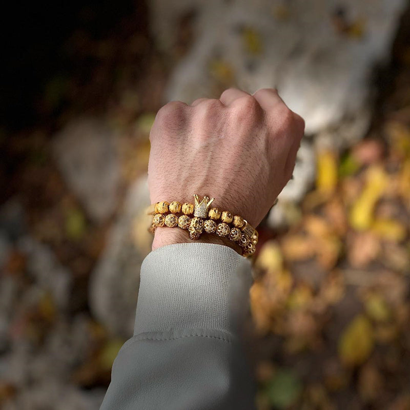 Men Bracelet jewelry Crown Charm Studded Zircon Macrame beads Bracelets