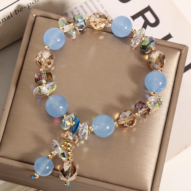 Original Handmade Aquamarine Crystal Bracelet For Women