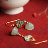 Sterling Silver Ancient Gold Hetian Jade Lotus Seedpod Enamel Women's Court Retro Temperamental Earrings