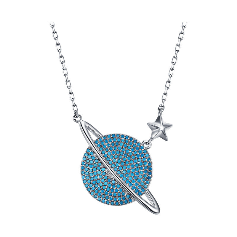 Colorful Full Diamond Fashion Planet Pendant Necklace