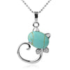 CSJA Animal Pendant Necklaces Natural Stone Cat Head Bow-knot Zircon CZ Silver Color Pendants Trendy Jewelry for Women Girl G538
