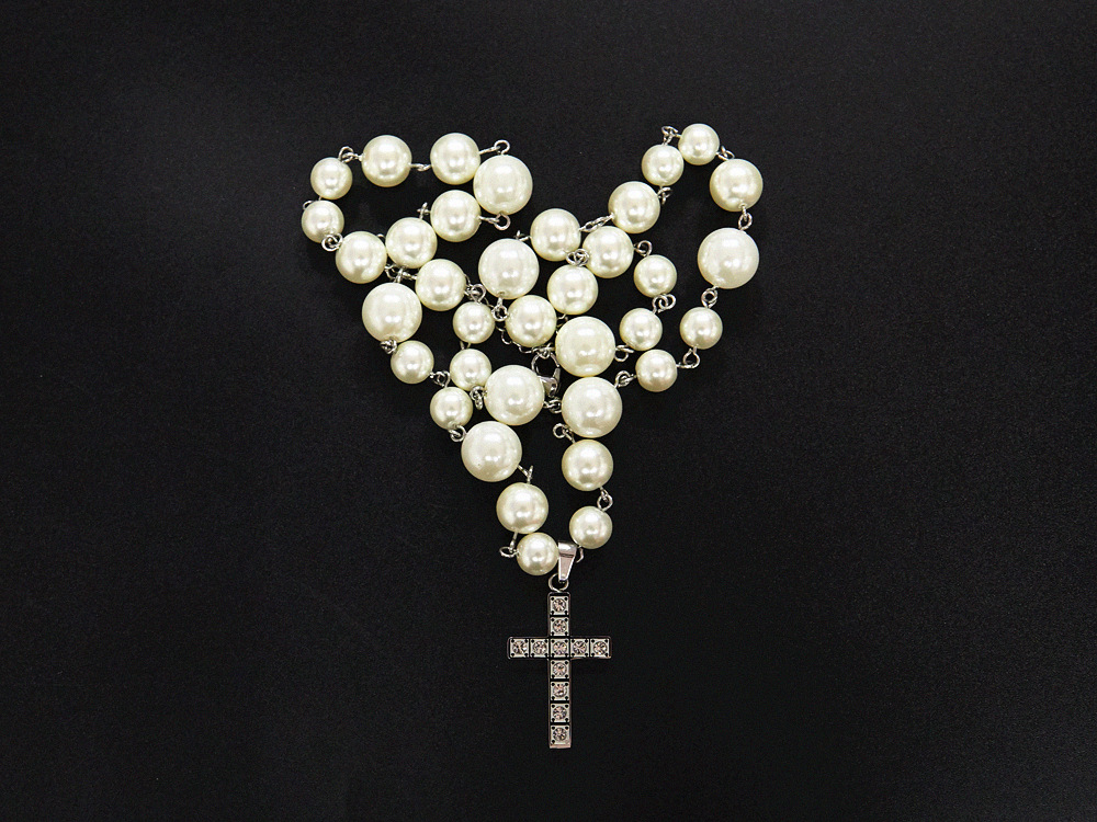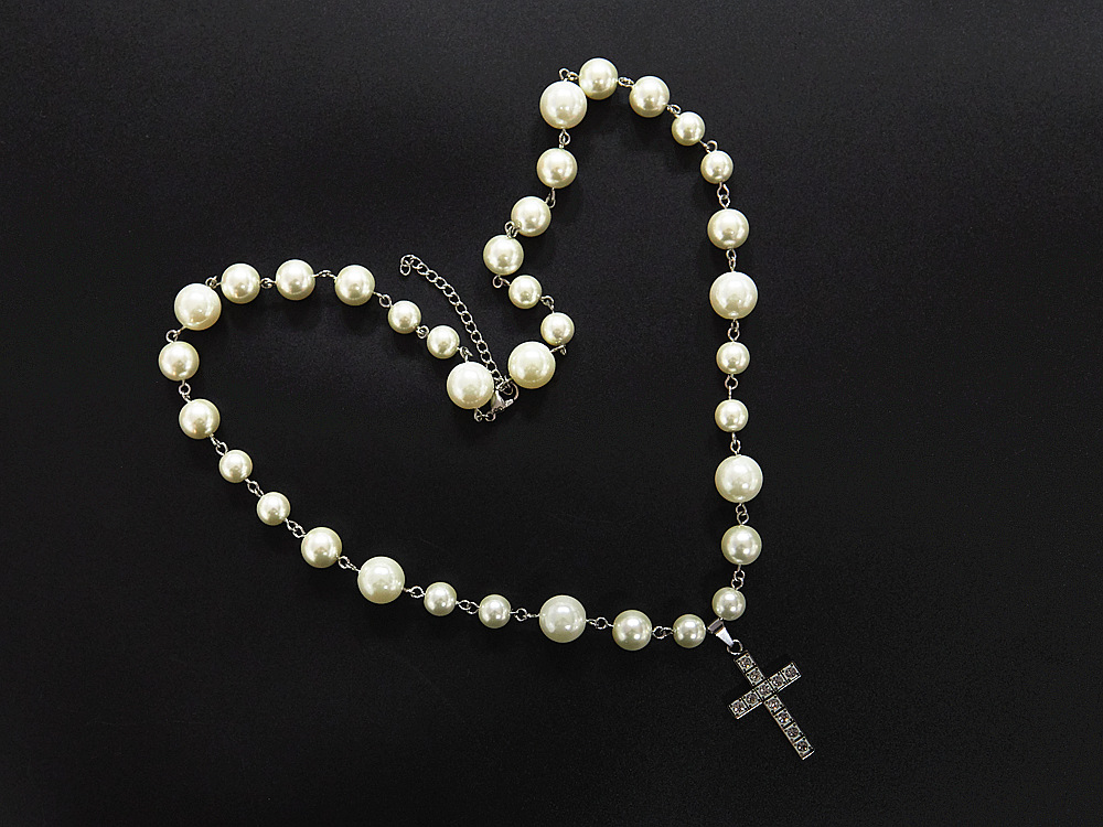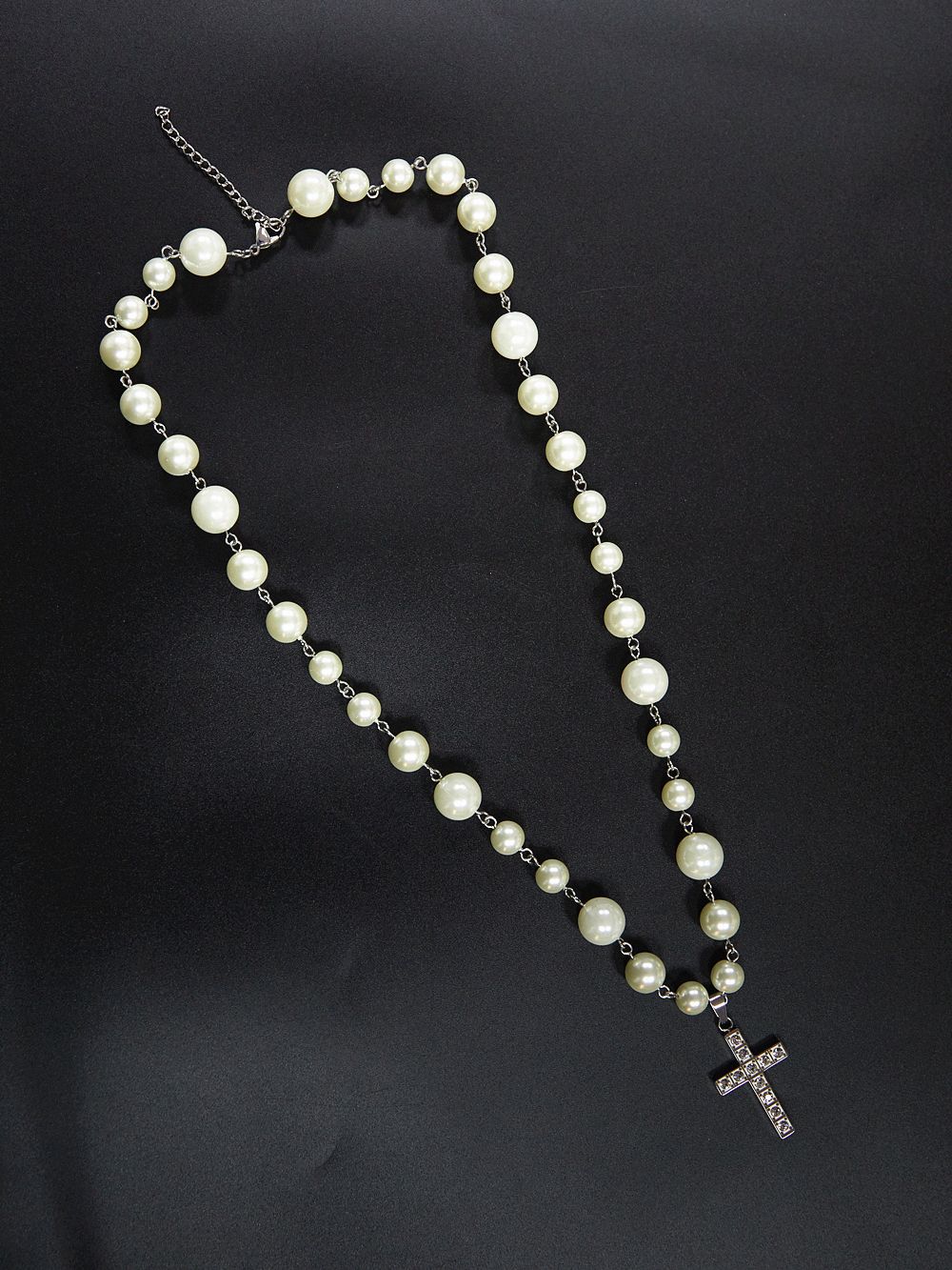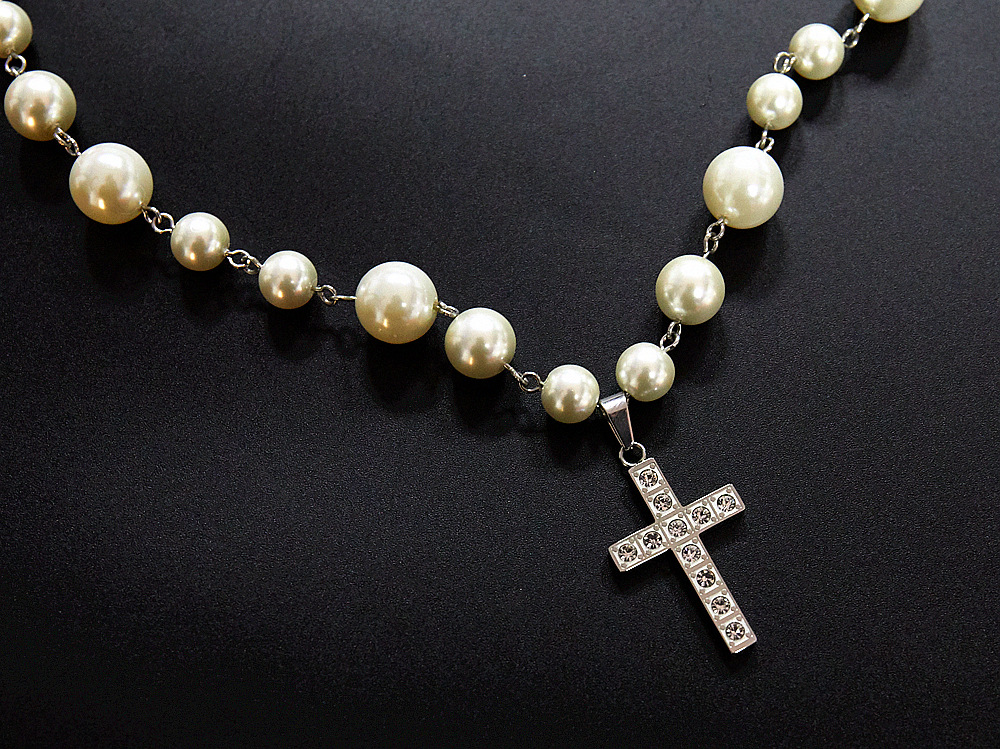 Titanium Steel Diamond Cross Pearl Necklace Adjustable Necklace