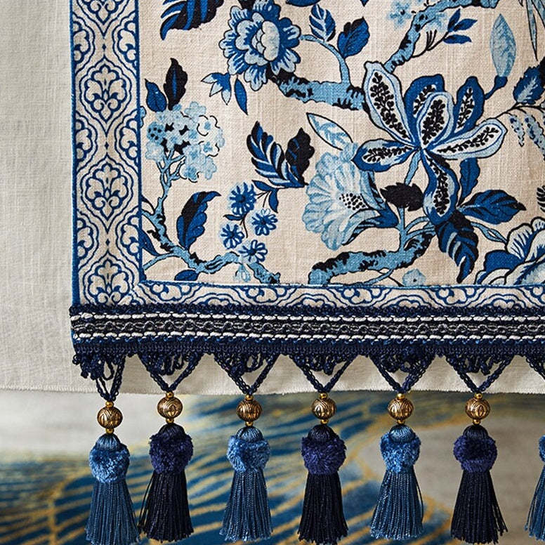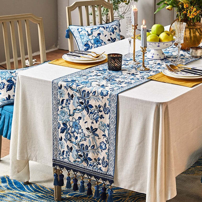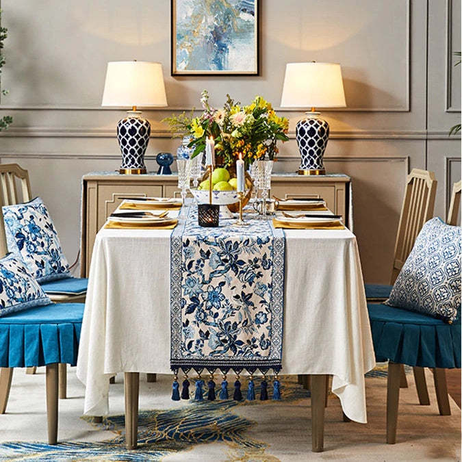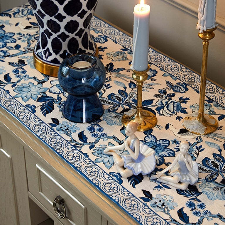 New Chinese Blue And White Porcelain Table Flag Fabric Cotton Linen Cover