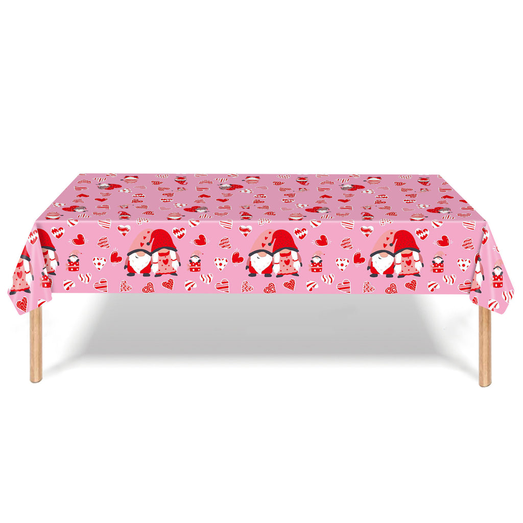 Valentine's Day Party Disposable Tablecloth Faceless Gnome Love Heart Table Cover