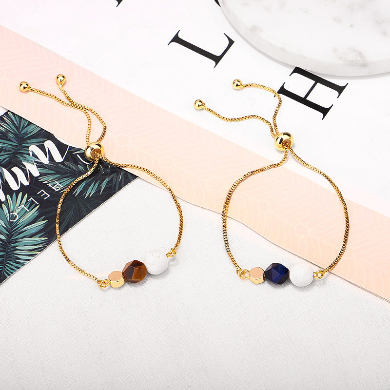 14K Gold Plated Color Preserving Box Chain Tiger Eye Volcanic Stone Yoga Bracelet