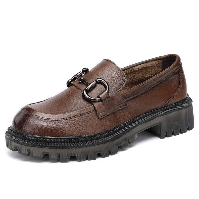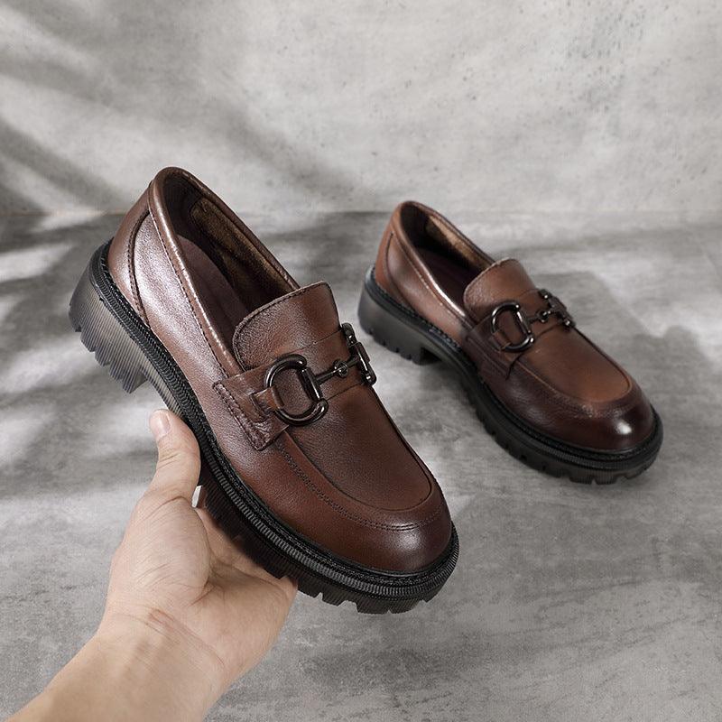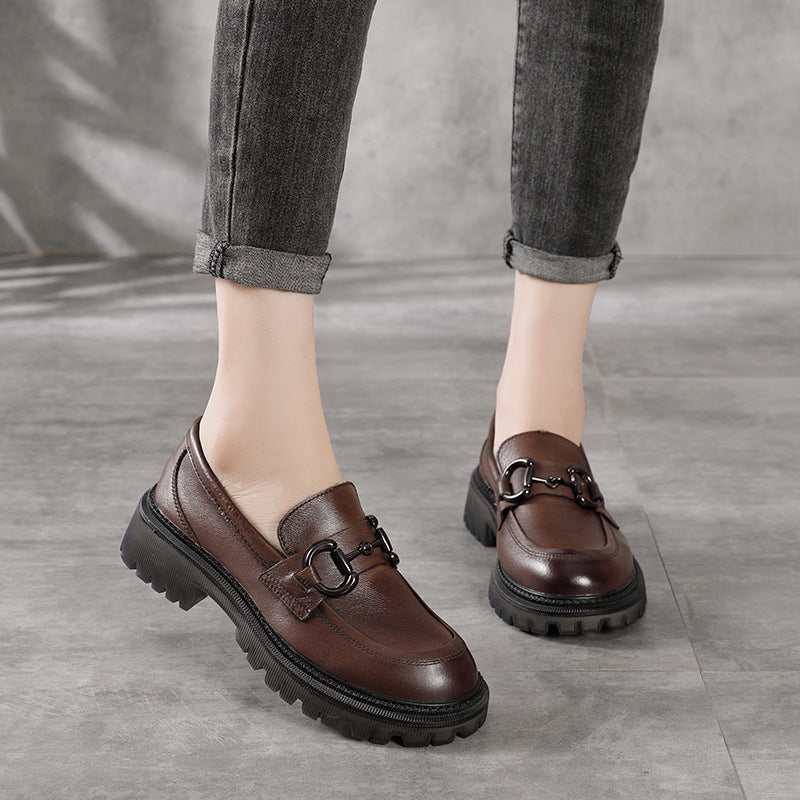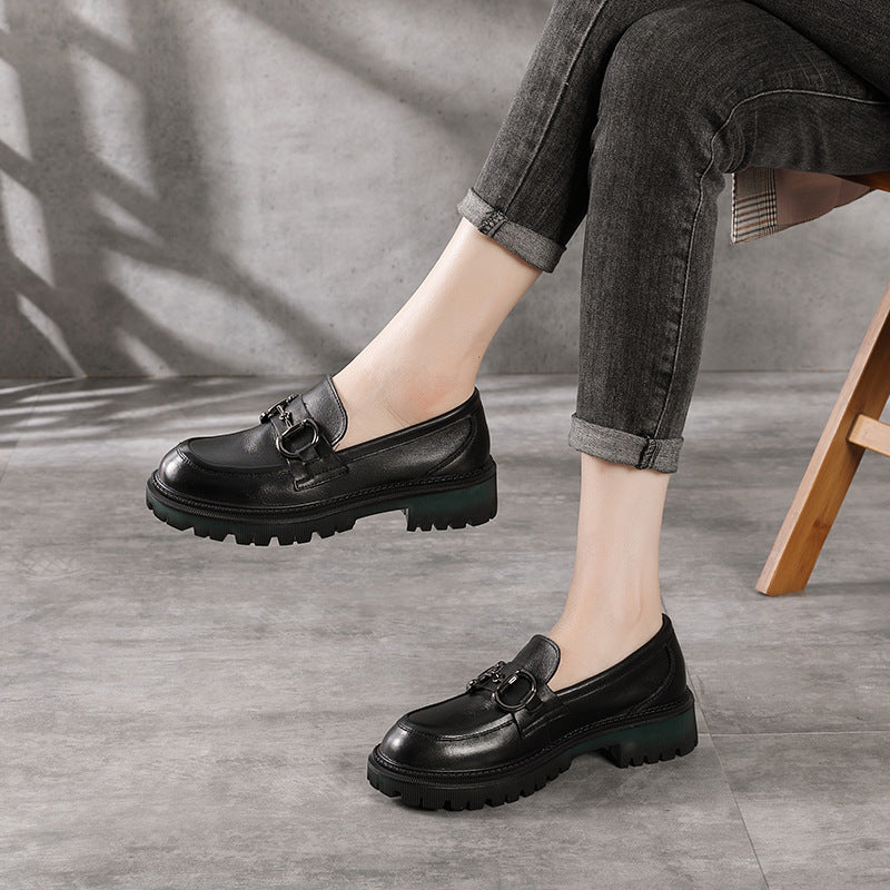 Delphinium Spring Models Leather Womens Shoes Casual Four Seasons Shoes Thick Heel Mid-heel Womens Shoes Deep Mouth Solid Color Loafers