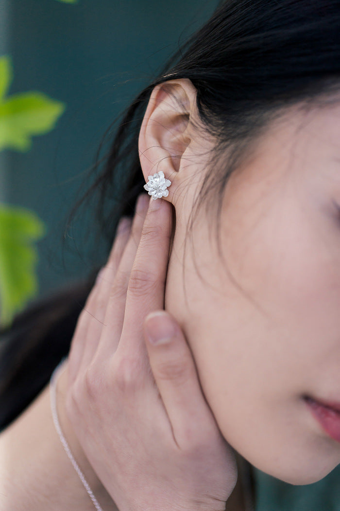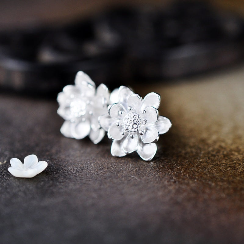 Literary Chinese Style Lotus s925 Sterling Silver Earrings