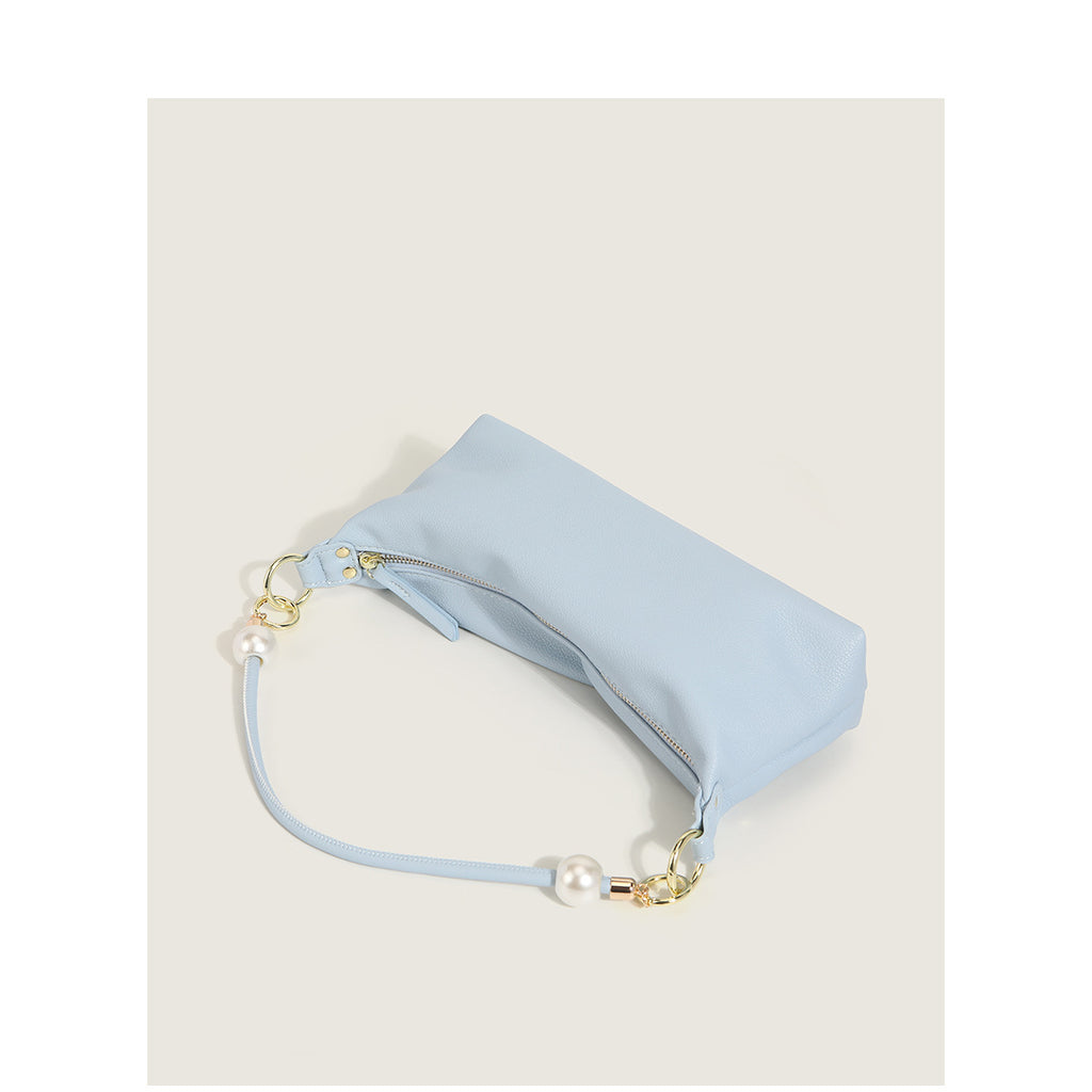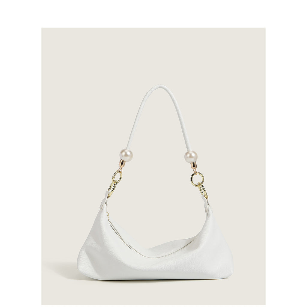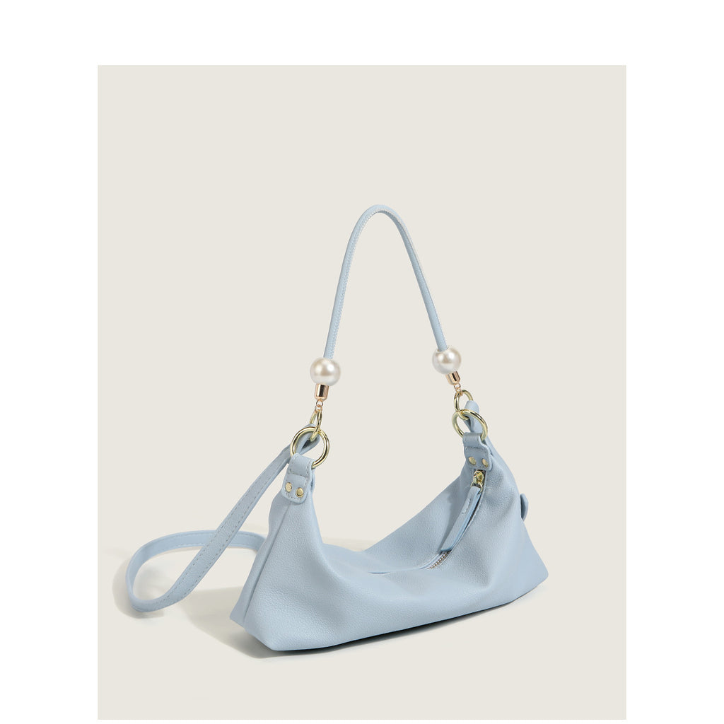 New Women's Bag Minimalist Pearl Baguette Texture Solid Color Shoulder Bag