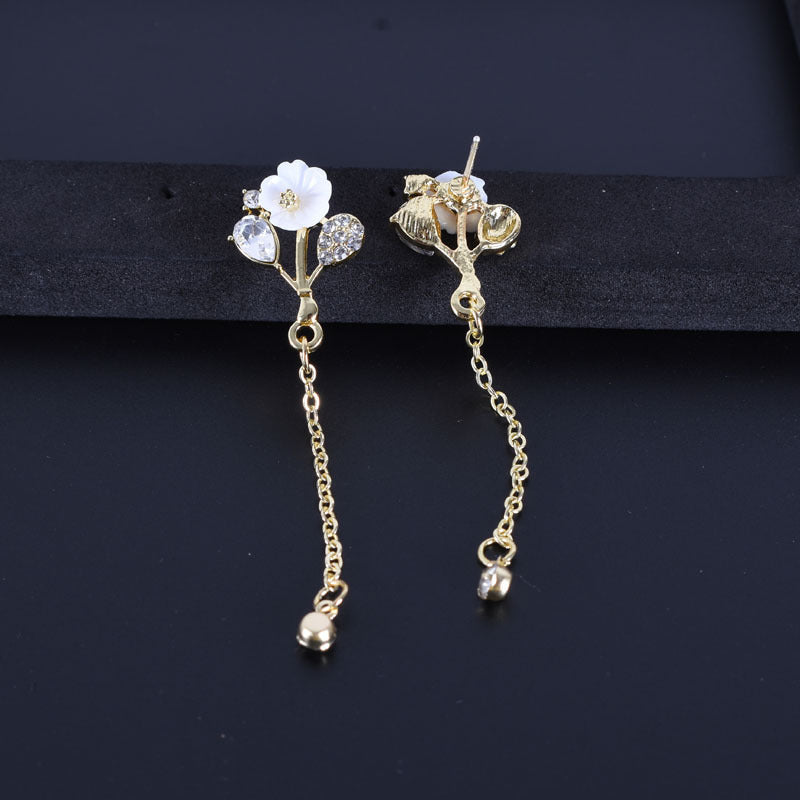 Silver Needle Shell Flower Earring Tassel Eardrop Korean Temperament Pearl Earring Female