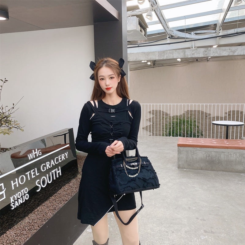 Color: 2576 small version black ribbon string beads chain, 2576 small version rice ribbon string beads chain