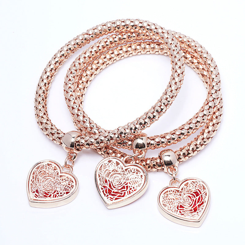Three-color Corn Chain Rose Peach Heart Bracelet